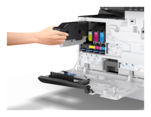 By using just a ¼ of the energy of a laser printer1 and reducing the amount of consumables required in the printing process, the WorkForce Enterprise devices reduce their environmental impact and offer a more energy-efficient solution. Enjoy the efficiency of a high paper capacity, up to a maximum of 2,100 sheets, and print up to 31,500 black or 28,000 colour pages without replenishing ink.